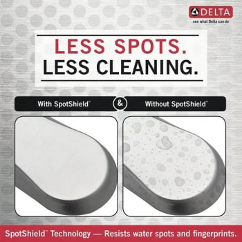 - SpotShield technology resists water spots, fingerprints and stains so the bath hardware stays cleaner longer