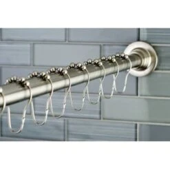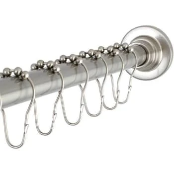 - Classic 60 in. to 72 in. Fixed Shower Rod with Hooks in Brushed Nickel