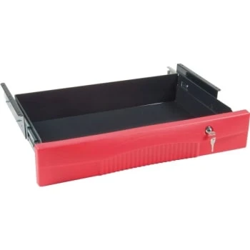 - Rubbermaid Single Full Extension Drawer – For Use With FG450088, FG451288, FG451388, FG452010, FG452088, FG453288, FG453388, FG454600, FG454610, FG454888, FG9T600, FG9T6700 – 40 lb Load Capacity – Red Color – Steel – Includes Hardware.